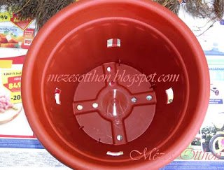 A műanyag cserépre vágjunk 4 kisebb lyukat.