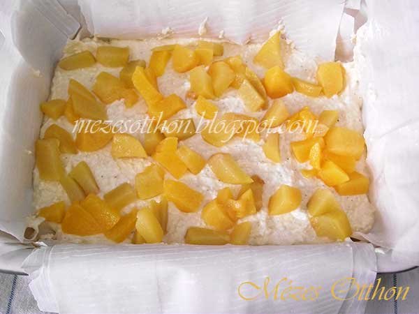 Elkészítés: Először elkészítjük a túrókrémet. A tojásokat szétválasztom, és a barackot apró kockára vágom. A tojások fehérjét csipet sóval kemény habbá verem. A túrót kikeverjük a cukorral, vaníliás cukorral és a tojássárgájával, majd hozzákeverem a pudingport is. A tojásos túrókrémhez óvatosan hozzákeverem a felvert tojáshabot.