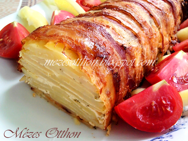 Ez a burgonyarolád tavaly júliusban került fel a blogra, én nagyon szeretem, köretként vagy vegyes salátával szoktuk enni. Szerintem mutatós is, nemcsak finom és egyáltalán nem bonyolult elkészíteni.